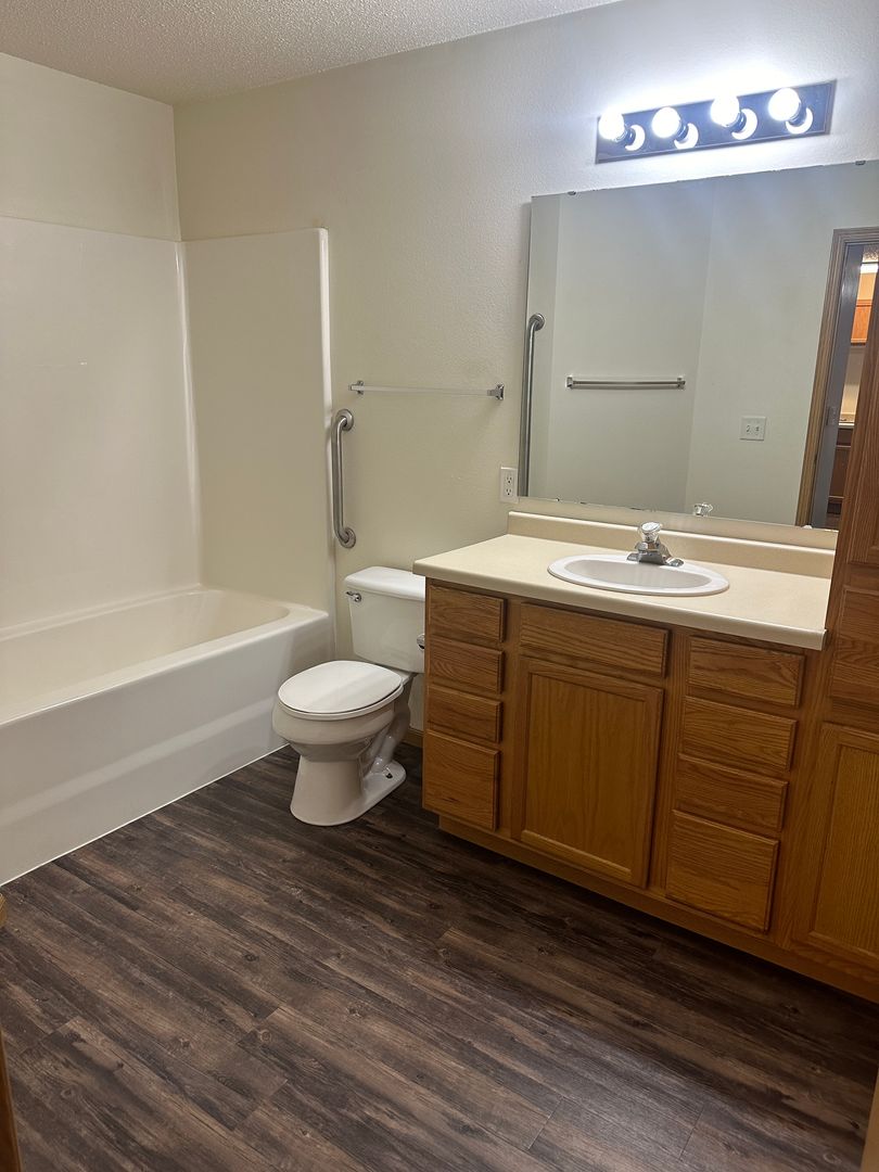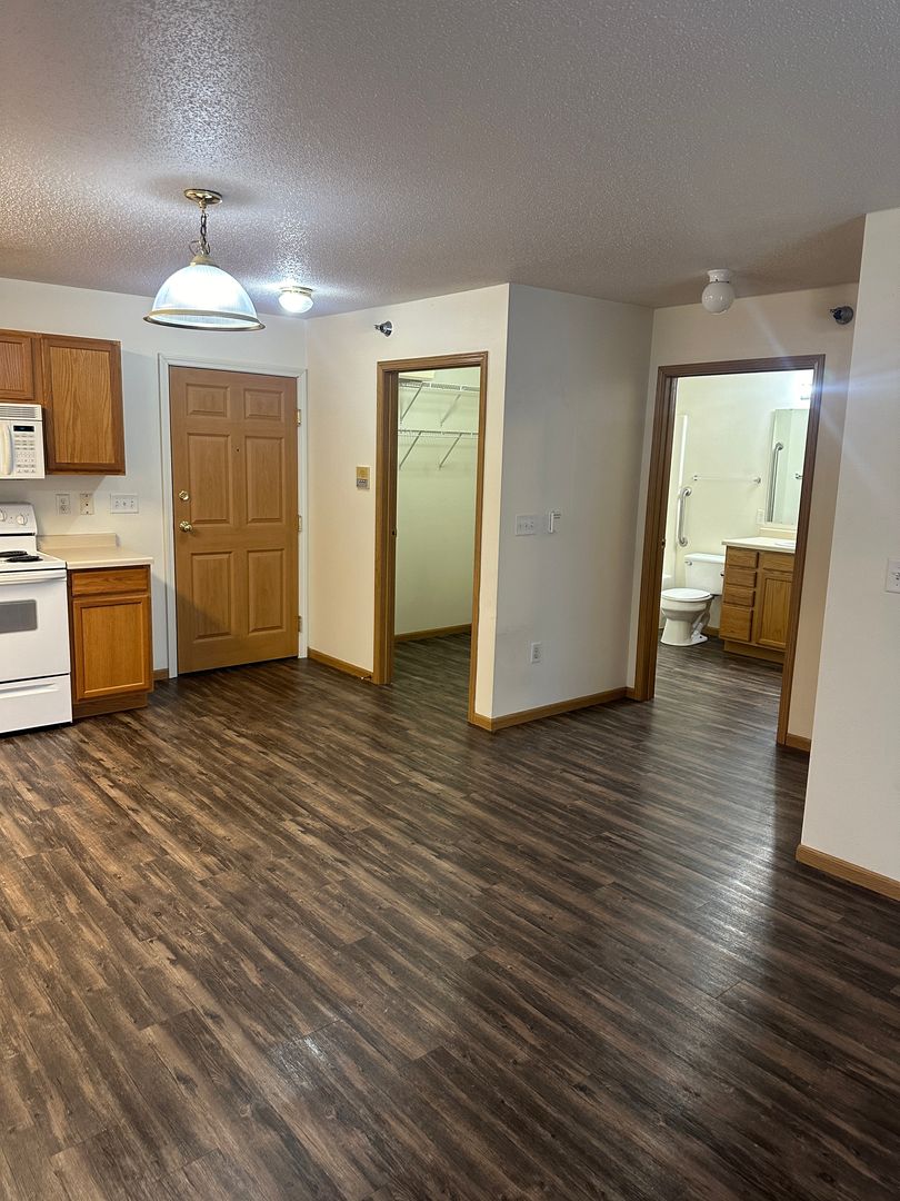 *WATER-PROOF PLANK FLOORING THROUGHOUT MAIN AREA AND BATHROOM, CARPET IN BEDROOM