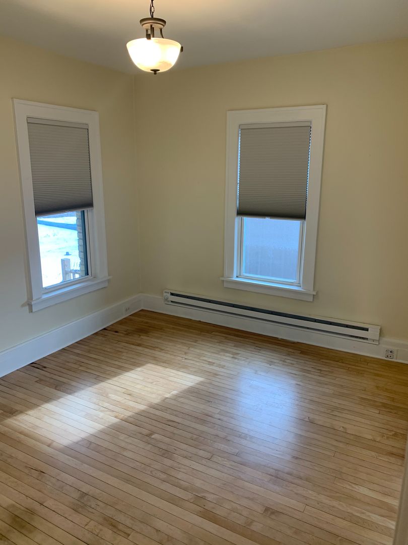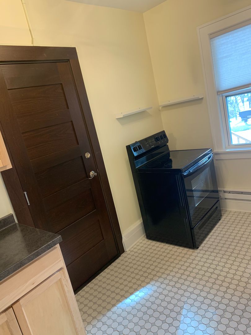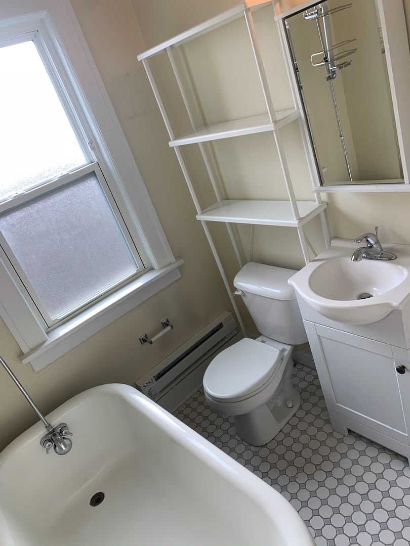 The units all have 2 bedrooms and a full Jack-and-Jill bathroom. The kitchens have brand new maple cabinetry and black appliances, the dining rooms offer built-in hutches for extra storage, and the bathrooms have original claw-foot tubs. Each unit has a front and back entrance and is pet-friendly with no additional fees.