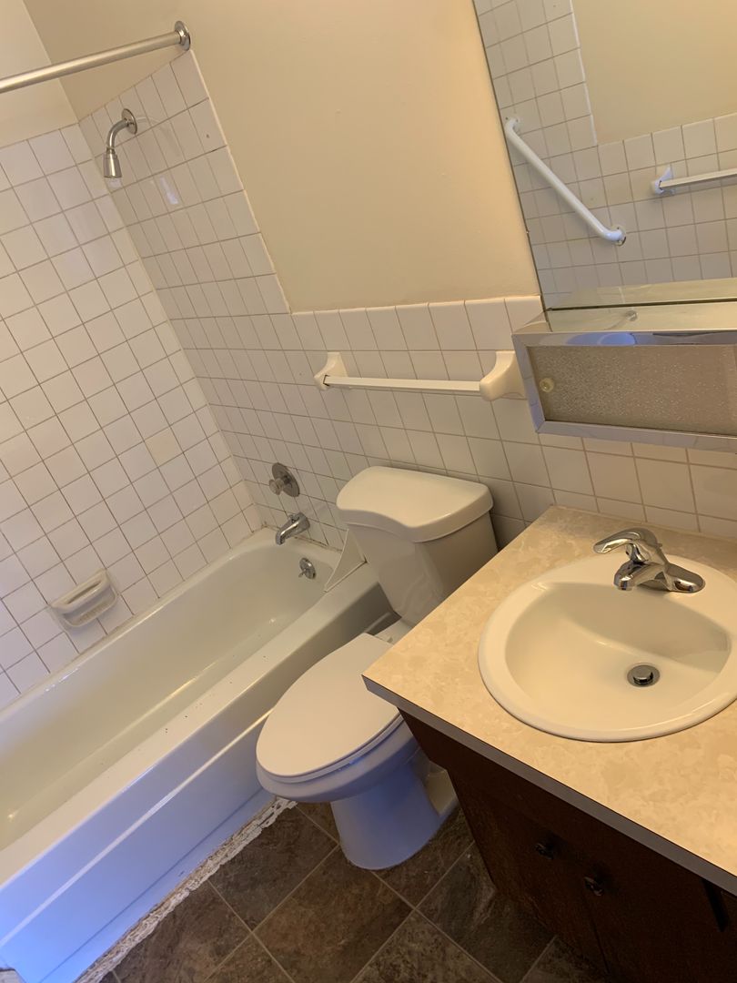This unit offers 2 spacious bedrooms with large closets, a full bathroom with additional linen closet, a huge hallway storage closet, a galley kitchen (including a standard fridge, electric stove, and dishwasher) and an informal dining room.  Other notable features include a balcony, intercom system, laundry facilities, and no additional fess for well-behaved fur babies!