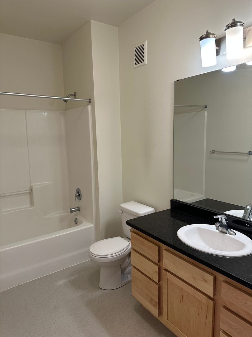 This unit offers 2 bedrooms, 2 full bathrooms, a large living area, an open kitchen, and a laundry room with washer and dryer in the unit.