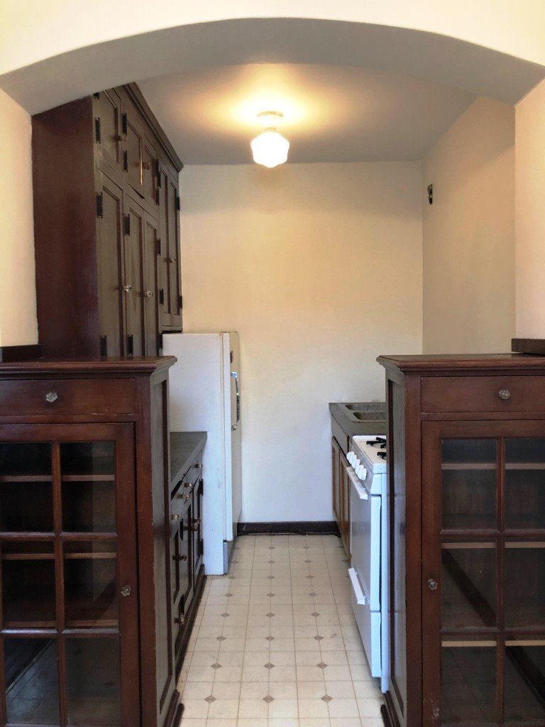 This adorable efficiency unit is full of old world charm! The unit offers a living/sleeping area with 2 closets, a small kitchen with built-in glass door hutches, a gas range, a informal eating area, and a full bathroom.